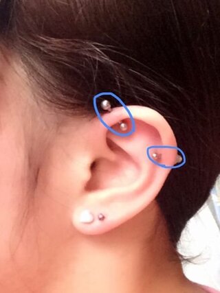 インダストリアルを開けたくて二つピアスを開けたのですが、角度があってないの... - Yahoo!知恵袋